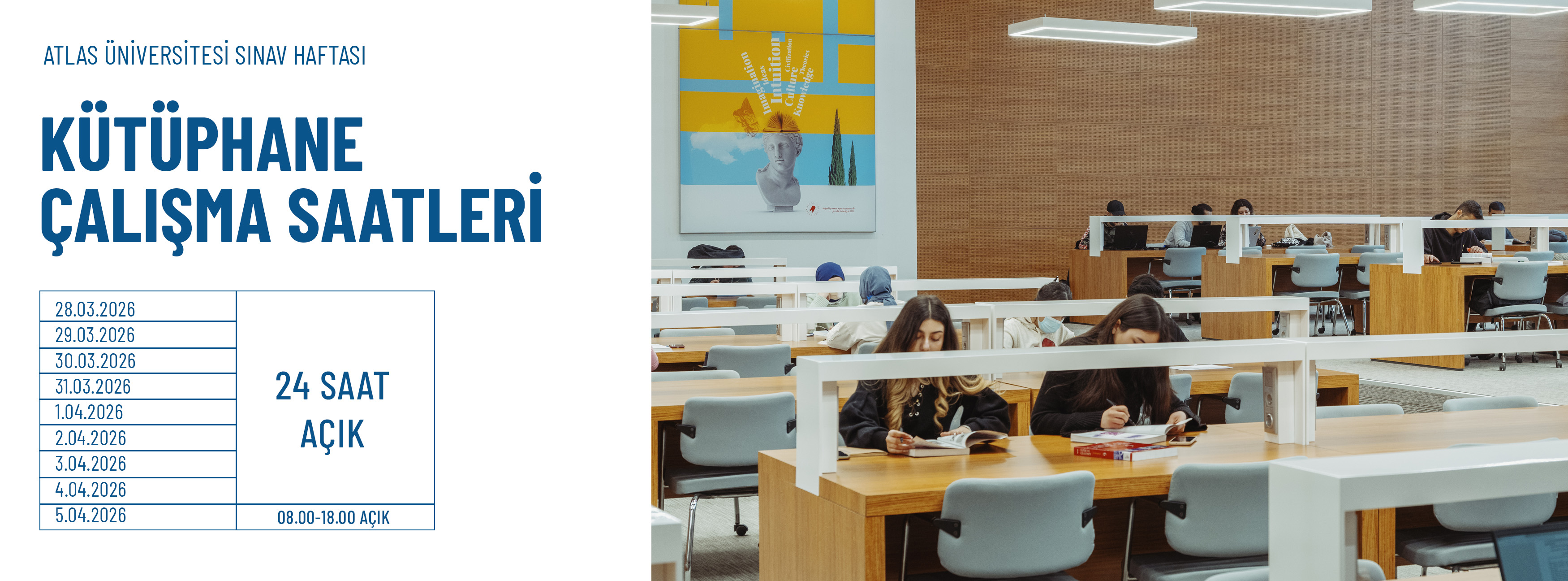 Atlas Üniversitesi Merkez Kütüphanesi olan Prof. Dr. Yüksel Tenekecioğlu Kütüphanesi 2500 m² ye yayılan, açık ve kapalı alanı ile kendisine ait terasında; okumayı, öğrenmeyi, araştırmayı mekânsal tasarımının verdiği estetik ve ergonomisiyle daha da keyifli ve huzur veren bir iklime taşıyor.