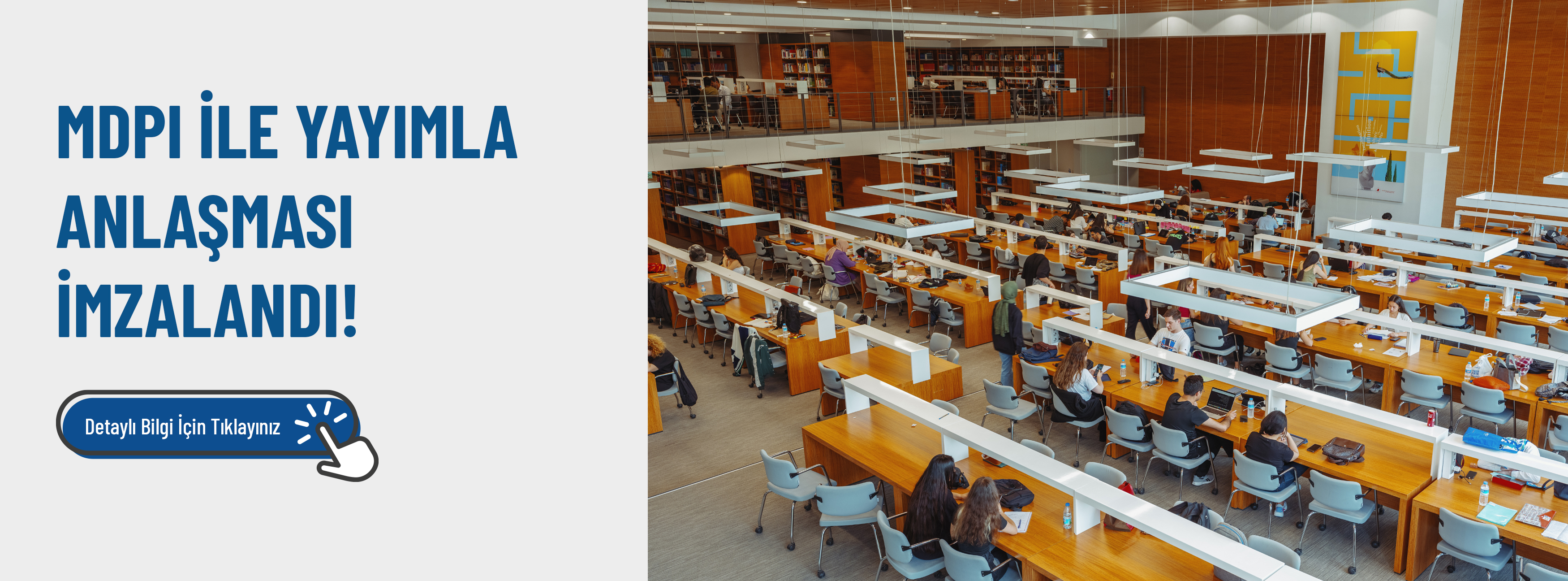 Kütüphanemiz kadim bir kütüphanenin sizi içine çeken büyüsüyle, yüksek teknolojinin kitaba, kaynağa erişimde sağladığı kolaylıkları ve çalışma zevkini bir arada sunuyor. Zengin kitap, e-kitap, elektronik kaynak ve dokümanları, 21 adet bağımsız gurup ve bireysel çalışma odası, katalog tarama ve otomatik ödünç kitap kioskları, çalışırken çayınızı, kahvenizi yudumlamanıza imkan veren kendisine has kafeteryası ile öğrenmeyi bir yaşam şekline dönüştürebileceğiniz harika bir deneyim. Bilgi kaynaklarına erişimde mobil teknolojileri geniş ölçüde kullanan kütüphanemiz, araştırma ve eğitim ihtiyaçlarını zaman ve mekândan bağımsız olarak desteklerken 7 gün 24 saat hizmetinize açık olacak.